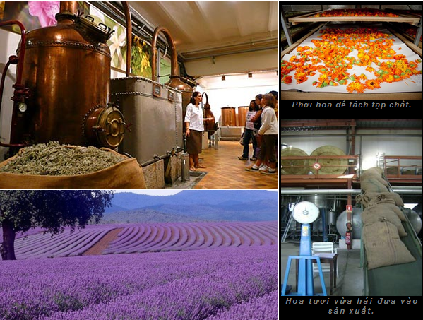 Chiết xuất tinh dầu và có thể dùng thêm hóa chất để nước hoa có nhiều màu đẹp mắt. Vật liệu tuyển lựa được đun lên cùng với nước.